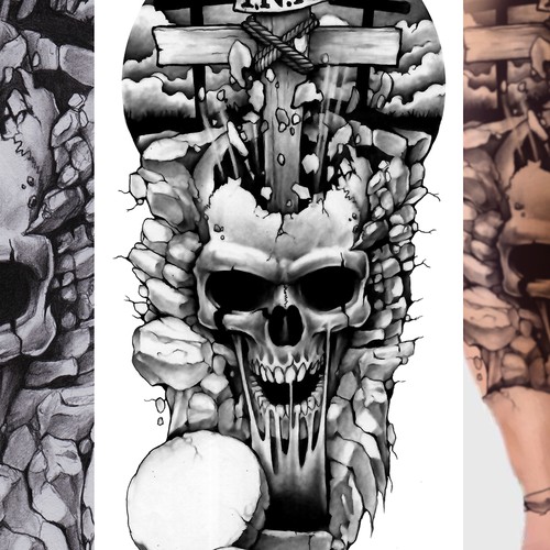 Christian Biker Tattoo Crucifixion Of Christ Cross Skull Hill Tomb Tattoo Contest 99designs